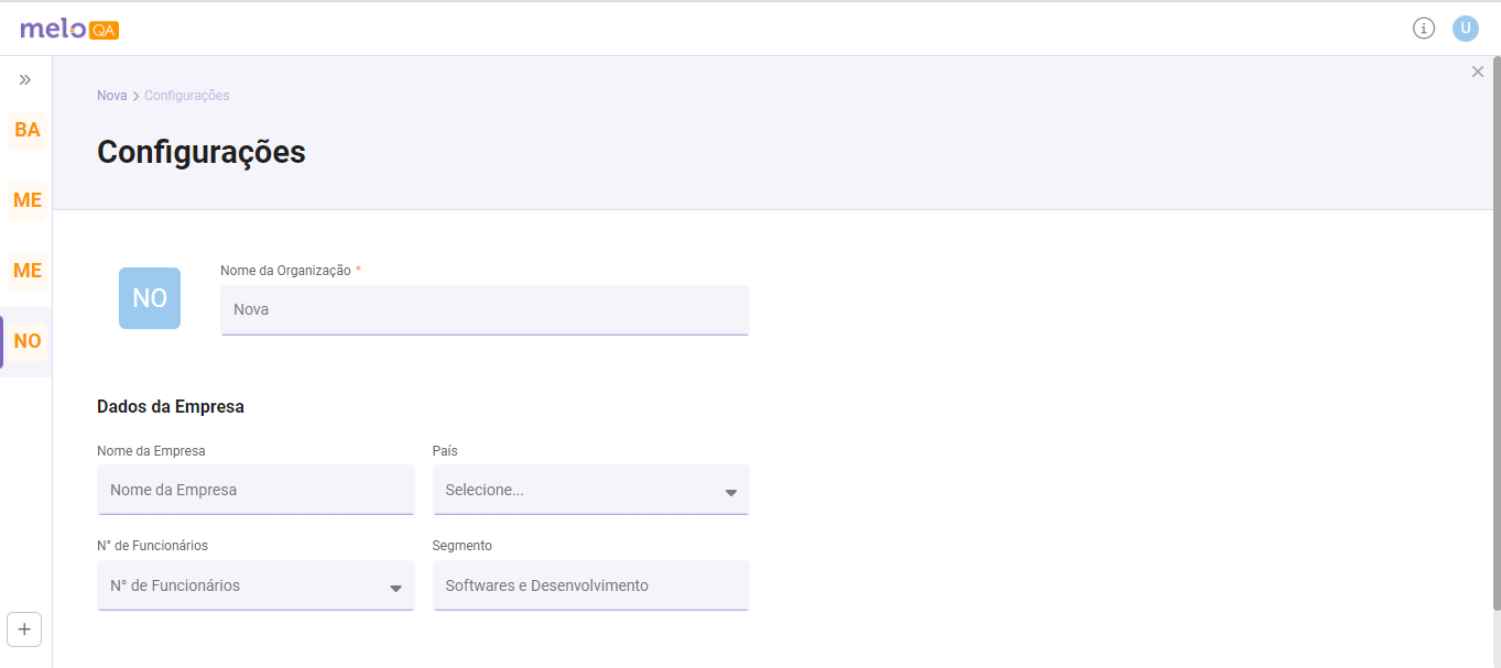 Nessa área é exibida também a opção de "**Excluir Organização**".